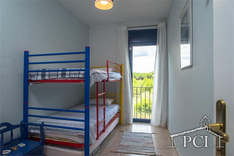 1 double bedroom with en-suite shower room and private balcony facing the golf course, 1 bedroom with twin beds, 1 bunk bedroom, both facing inland. All rooms fitted with excellent cupboard space. Shower room.