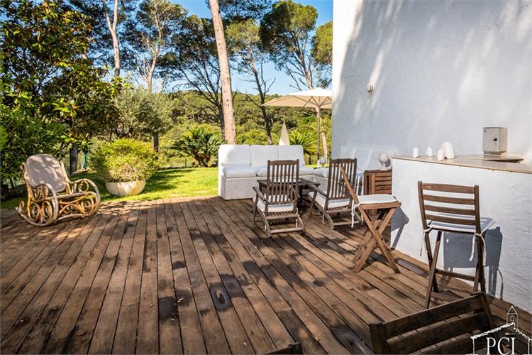 The terrace has comfortable seating with sun umbrella and shade, a large area covered by grass and a wooden decked chill out area which has additional seating and eating area, plus a small area that can be used as a bar. The garden offers plenty of sun and shade during most of the day. There is a small gate that leads to the communal pool and garden area.