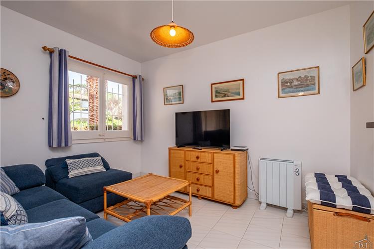 Jardin privé pour accéder à l’entrée principal de la maison, cuisine ouverte équipée : table de cuisson vitrocéramique et four électrique, microondes, kettle, machine à laver. Bel séjour et salle à manger avec sortie à terrasse couverte et jardin privé.