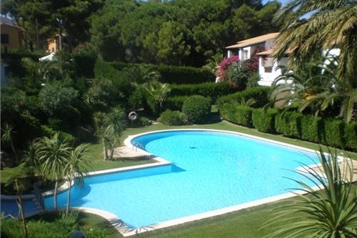 Communauté avec joli jardin en entourant la piscine communautaire.
