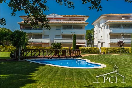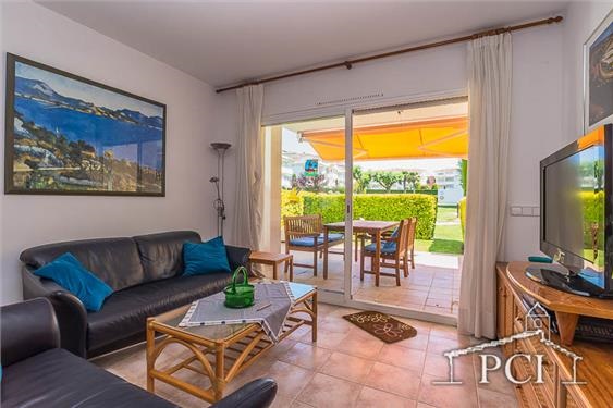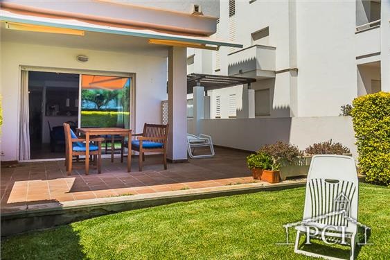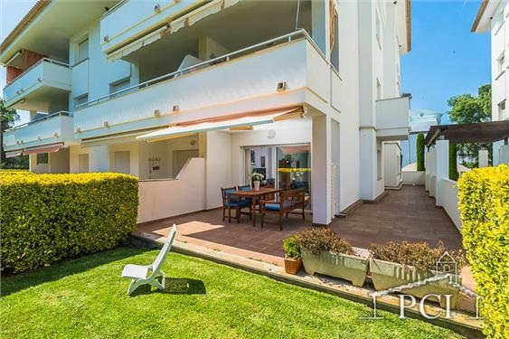 Planta baja bien equipada, con salida a terraza y jardín desde el que se accede a una bonita piscina comunitaria rodeada de mucho césped. Urbanización respetuosa y tranquila. El apartamento tiene una plaza de parking en garaje comunitario. Recomiendo visitar playas y pueblos de los alrededores, con el coche son pocos minutos.